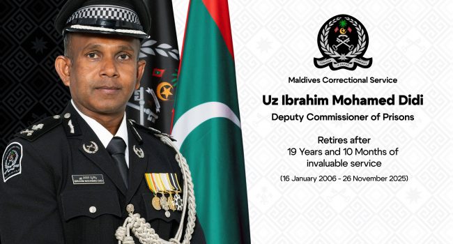 އެމްސީއެސްގެ ޑެޕިއުޓީ ކޮމިޝަނަރ އޮފް ޕްރިޒަންސް އަލްއުސްތާޛް އިބްރާހިމް މުޙައްމަދު ދީދީ ރިޓަޔަރކުރައްވައިފި