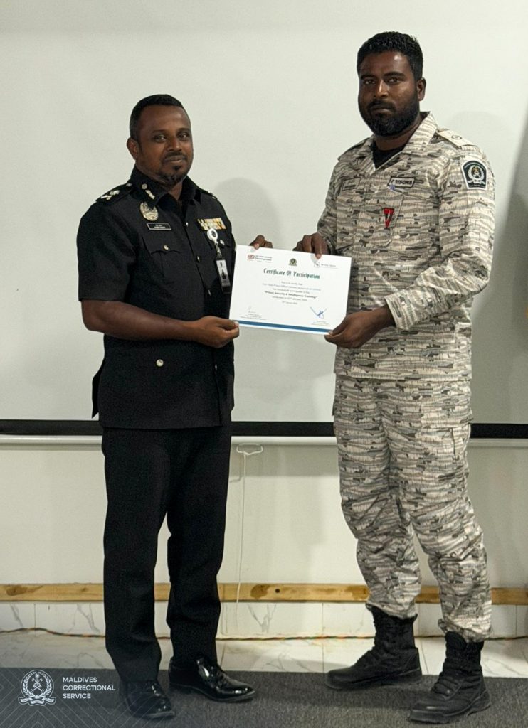 މޯލްޑިވްސް ކަރެކްޝަނަލް ސަރވިސް (އެމްސީއެސް) އިން “ޓްރިޒަން ސެކިއުރިޓީ އެންޑް އިންޓެލިޖެންސް ޓްރޭނިންގ ” ޕްރޮގްރާމް އައްސޭރި ޖަލުގައި މިއަދު ހިންގައިފިއެވެ.