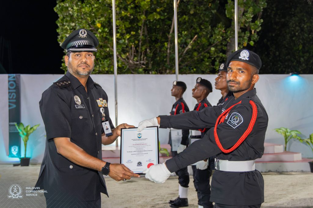 މޯލްޑިވްސް ކަރެކްޝަނަލް ސަރވިސް (އެސްސީއެސް) އިން “ސެޓްފިކެޓް 1 އިން ބޭސިކް ކަރެކްޝަނަލް އޮފިސަރސް ޓްރޭނިންގ” ޕްރޮގްރަމްގެ ދެވަނަ ބެޗް ދަސްވެނިވުމުގެ ރަސްމިއްޔާތު ރޭ މާފުށީ ޖަލުގައި ބާއްވައިފިއެވެ.